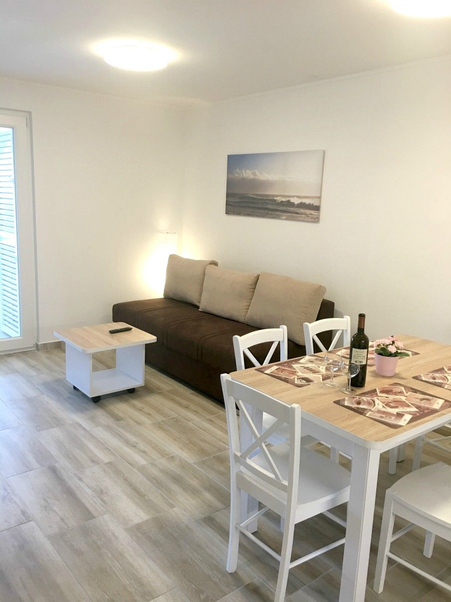 Die Ferienwohnungen Zaglav Superior für 3 + 3 Personen sind Wohneinheit auf zwei Etagen in der Ortschaft Zaglav auf der Insel Cres. Die Ferienwohnungen wurden im Jahr 2017 komplett renoviert und befinden sich nur 10 geheminuten von einem Feinkiesstrand entfernt. Jede Ferienwohnung hatt eine Wohnfläche von ca. 54 m2. Im Erdgeschoß befindet sich die Wohnküche mit Essecke und ausziehbarer Couch für 2 Personen (140 cm breit), SAT-TV. Im Obergeschoß befindet sich ein Doppelzimmer mit französischem Bett und ein Etagenbett für zwei Personen, Meerblick, Bad/WC. Vor dem Eingang gibt es eine kleinere Terasse mit Sitzgarnitur und Meerblick. Parkplatz in der der Strasse vor dem Haus.- Maximale Personenanzahl : 4