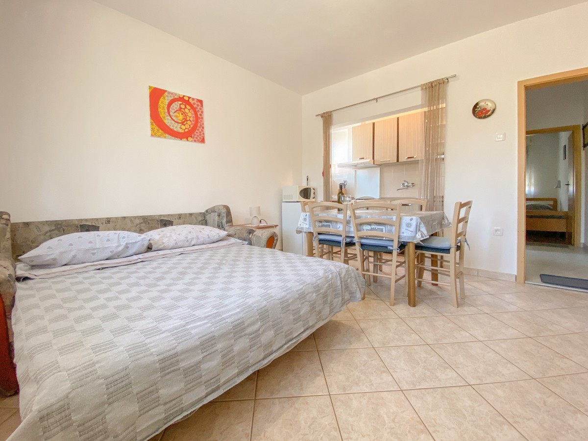 This apartment for up to 5 persons is situated on the first floor and consists of one bedroom with double bed and one single bed, a living room with s...