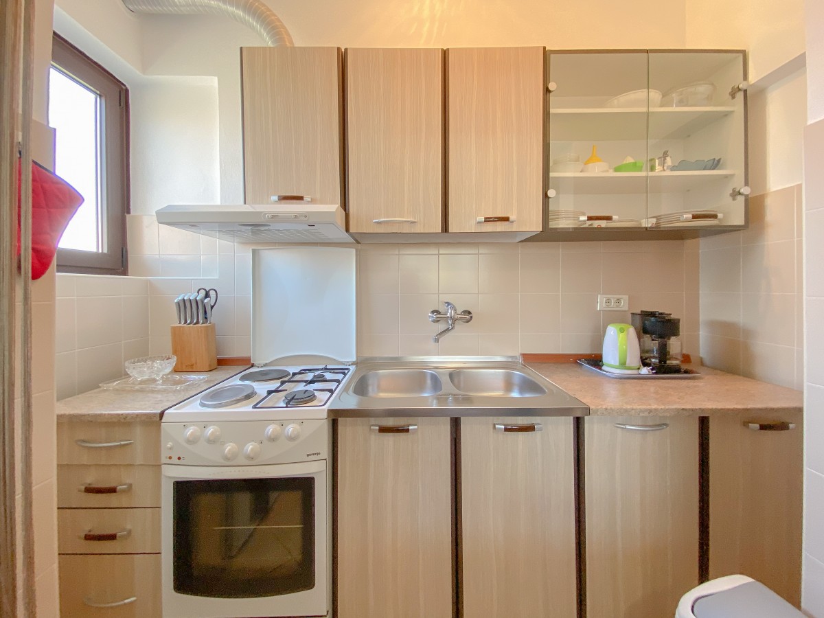 This apartment for up to 5 persons is situated on the first floor and consists of one bedroom with double bed and one single bed, a living room with sofa bed for 2 persons and a kitchen. The kitchen is equipped with gas/electric stove, oven, refrigerator and coffee maker. In addition there is a bathroom with shower and toilet and a nice balcony with furniture. Air condition, SAT-TV, WLAN, bed linen and towels are included in the price, pets are welcome on charge.- Maximum persons: 5