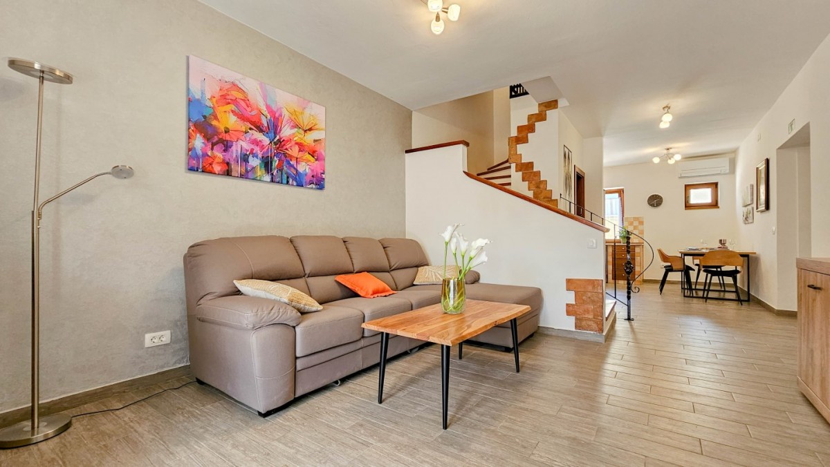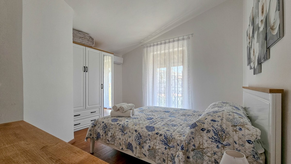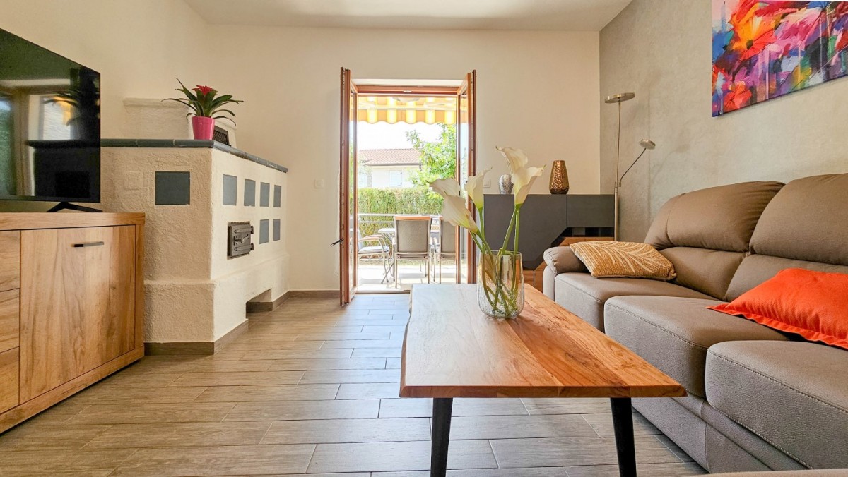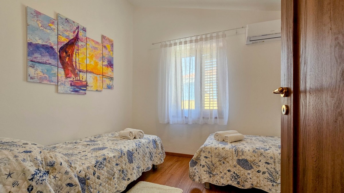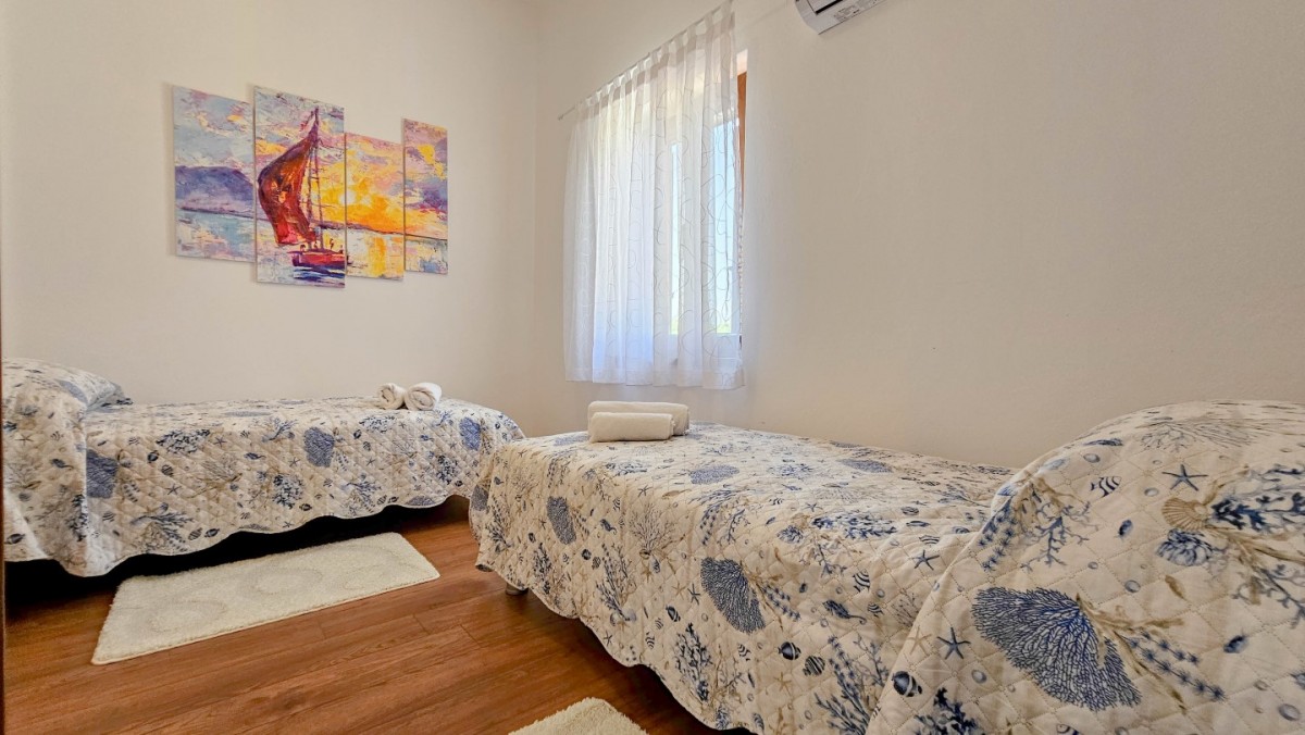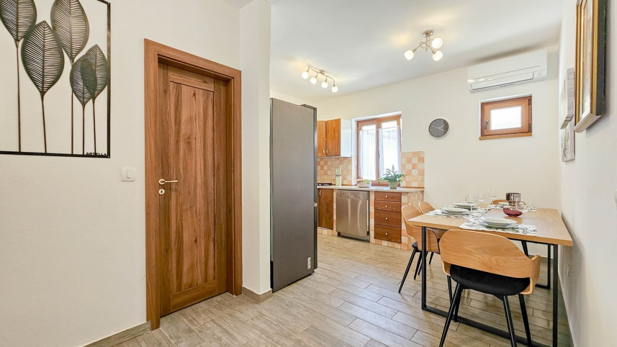 Godetevi una vacanza rilassante nella bellissima Villa Marlene situata nella tranquilla cittadina di Buinija, non lontano dalla magica città di Novigrad, che si trova sulla costa istriana. Questa spaziosa villa di 85 m2 con un giardino di 300 m2 è la destinazione ideale per le vostre vacanze. Può ospitare comodamente fino a 5 persone, offrendoti lo spazio perfetto per fuggire dallo stress quotidiano.All'interno della villa troverete una cucina ben attrezzata con sala da pranzo, dove potrete preparare deliziosi pasti con ingredienti freschi locali. Dall'ampio soggiorno si accede direttamente ad una splendida terrazza di 20 mq, dove si può godere di aria fresca e di una splendida vista sull'ambiente.La villa dispone di 2 comode camere da letto, che ti permettono di dormire sonni tranquilli e rinnovare le tue energie. C'è anche un pratico bagno con doccia. Il cortile della villa offre 4 comodi lettini, dove è possibile rilassarsi leggendo un libro o prendere il sole godendosi il caldo sole istriano.Villa Marlene ti offre anche la comodità di 2 posti auto, così puoi esplorare facilmente la zona circostante e le città vicine. Inoltre, gli animali domestici sono ammessi con un supplemento di 10 euro/giorno per animale.- Persone al massimo: 5