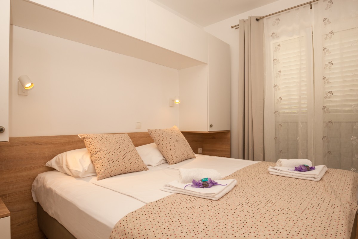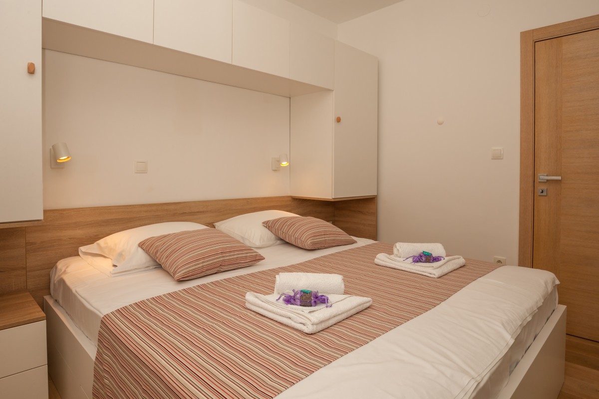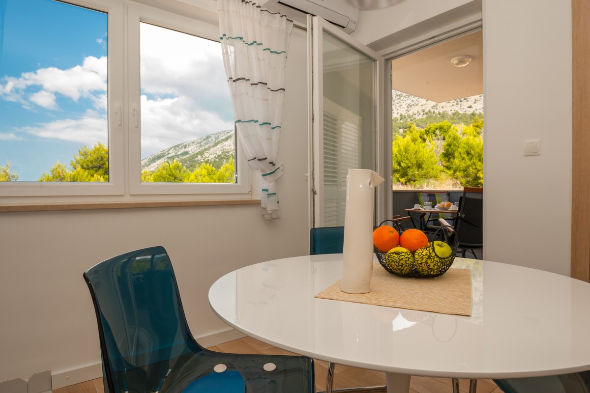 2-spálový apartmán pre 6 osôb so 180˚-vým výhadom na more, hory a okolie mesta Bol pôsobí vemi útulným dojmom. Dôraz je na kadom detaile. Apartmán sa nachádza na druhom poschodí moderného apartmánového domu a spa kritériá dnešnej doby. Ideálna pozícia 10 minút peši od centra a zárove aj k promenáade a vyhadávanej krásnej plái Zlatni rat.